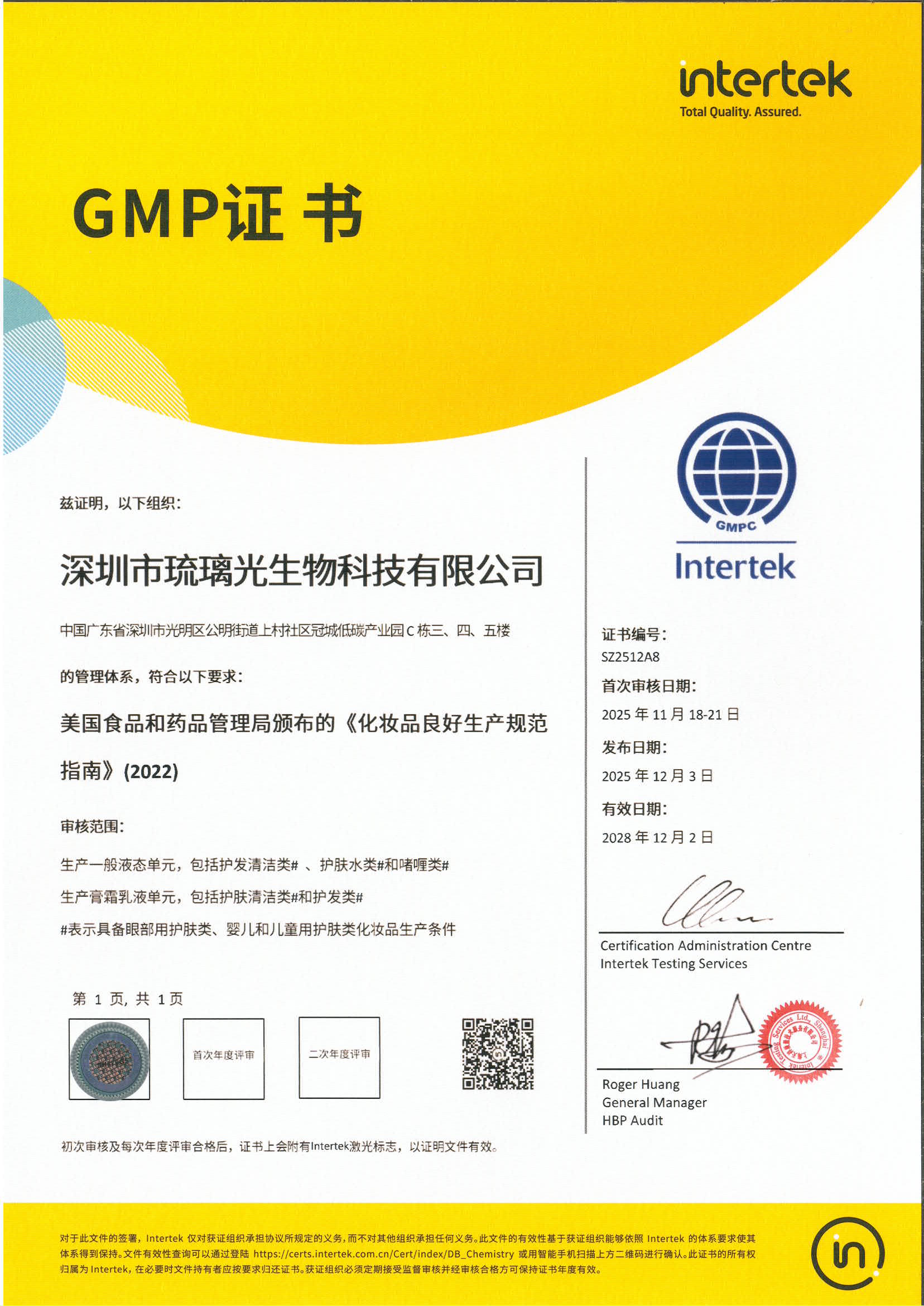 琉璃光GMP證書_美國GMPC中文證書